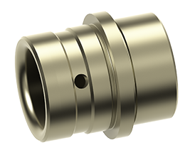 Progressive’s Guided Ejector Bushings are available in four material options: Solid Bronze to eliminate galling to Leader Pins and outperform steel bushings, Bronze Plated Steel offering wear resistance with a harder base material for increased longevity and decreased deformation, Graphite Plugged for lubricity without grease, and QC with solid alloy bronze liners and lubricating strips.